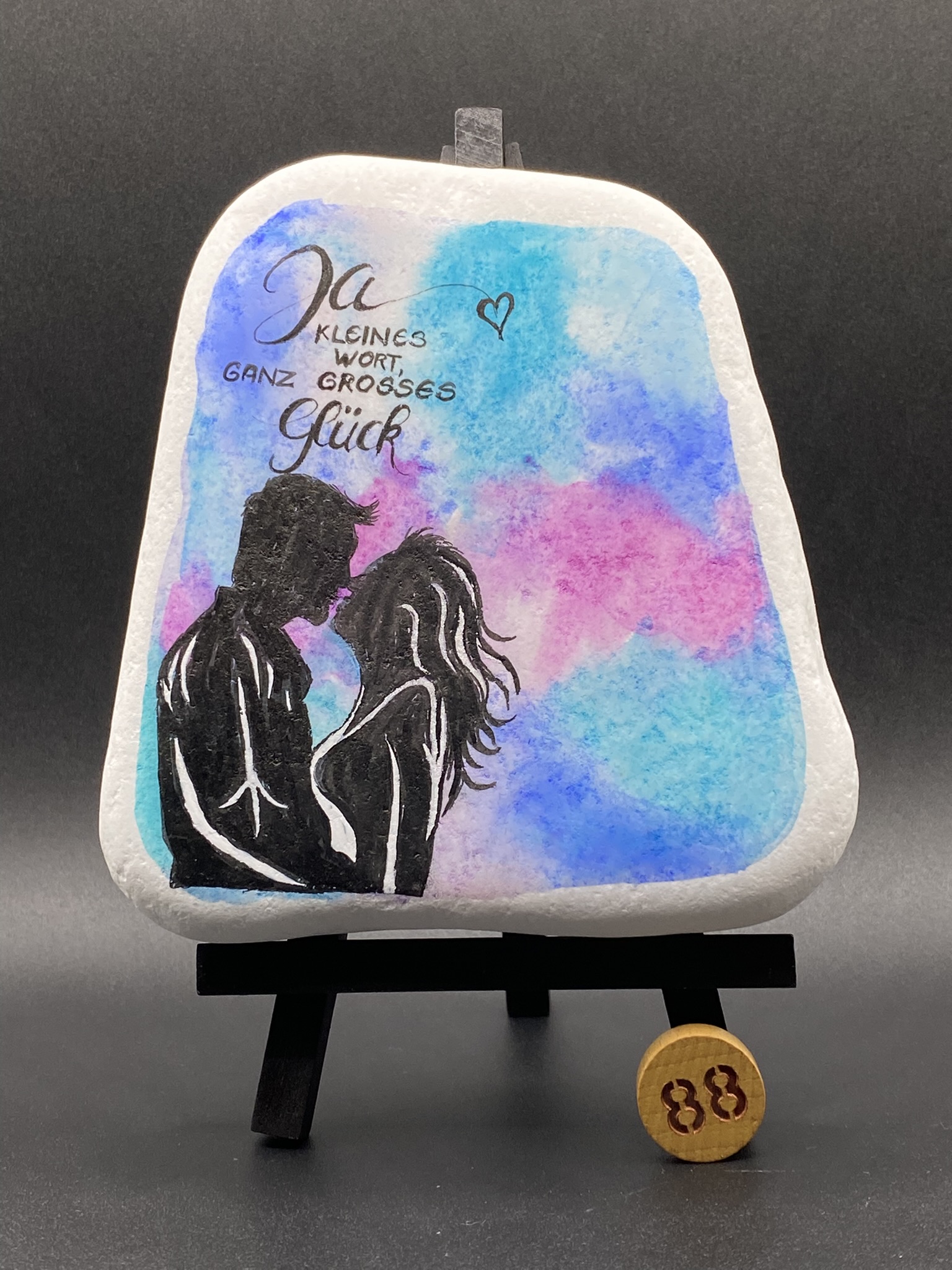 Dazu der Spruch: Ja, kleines Wort, ganz grosses Glück.